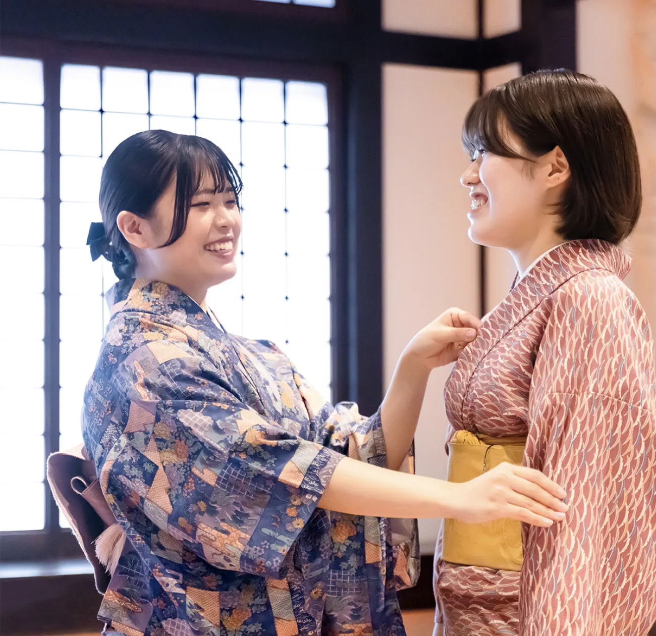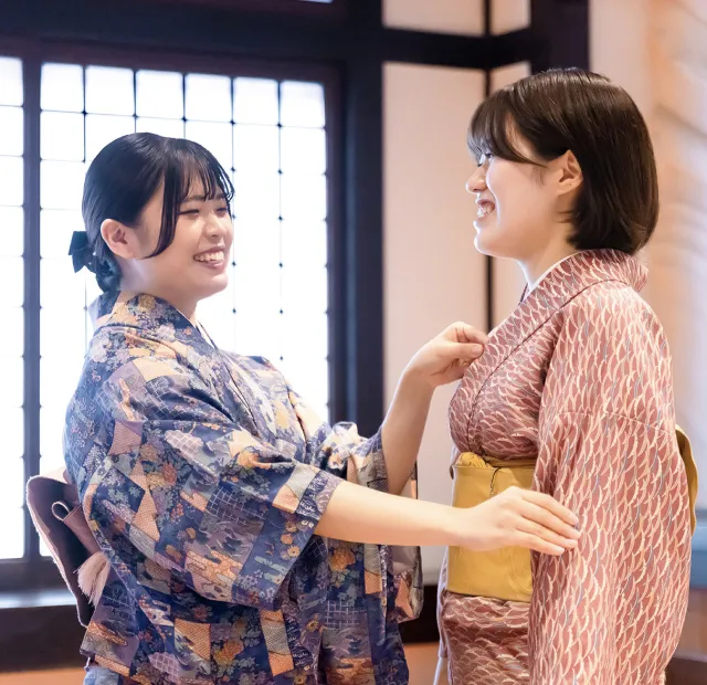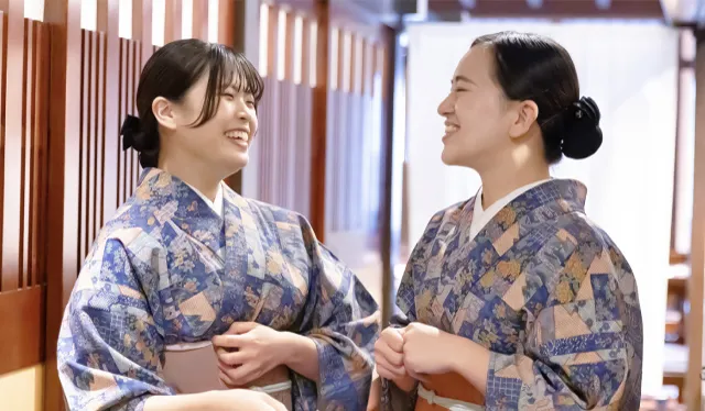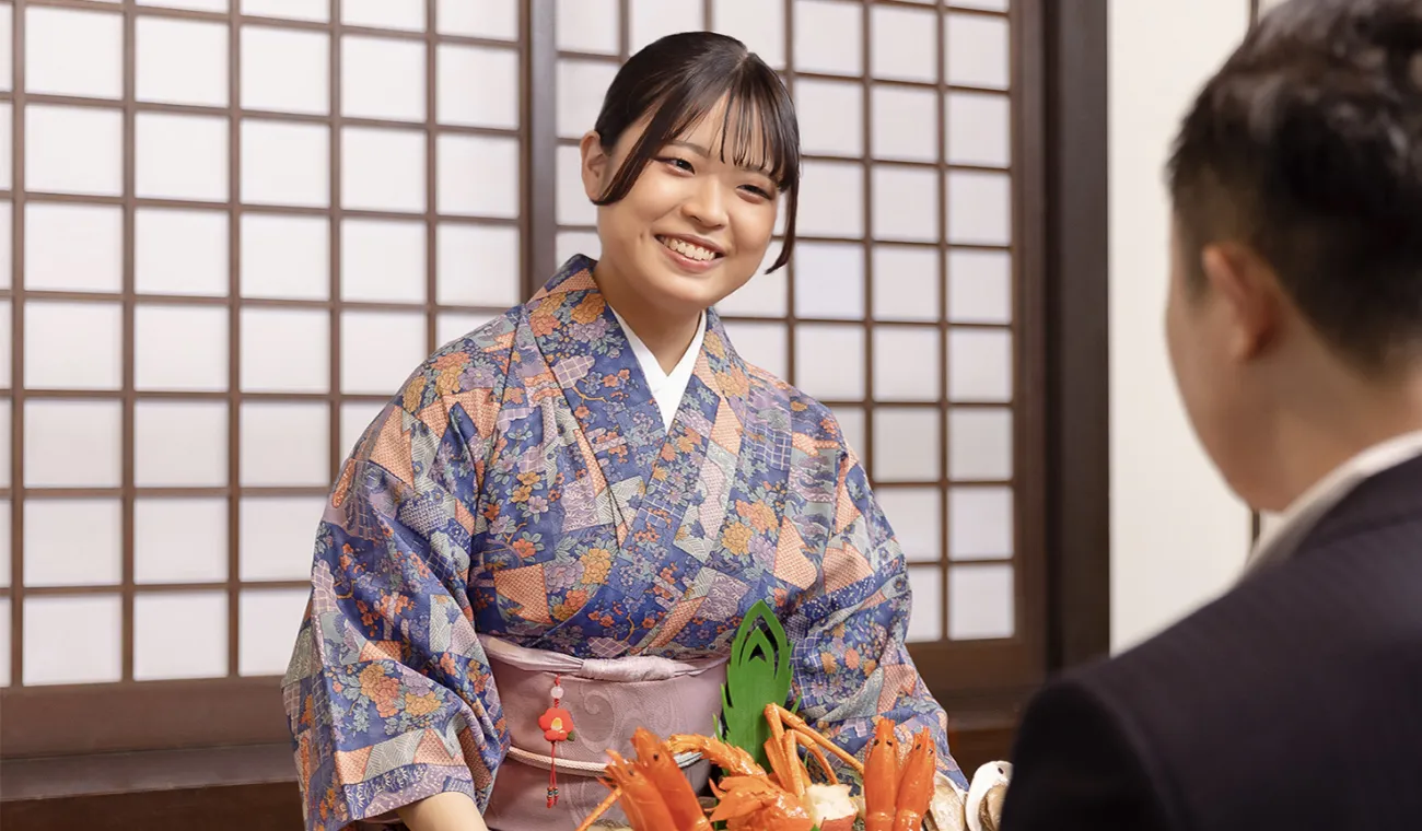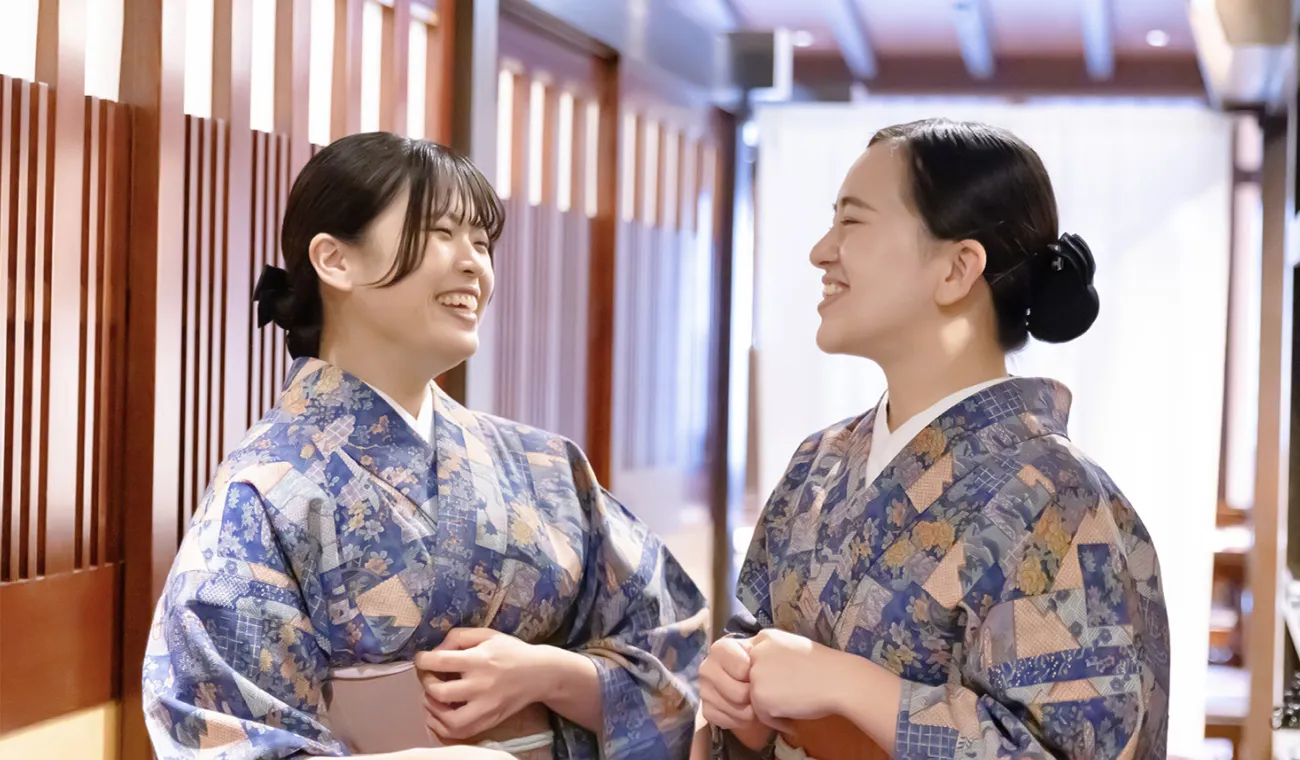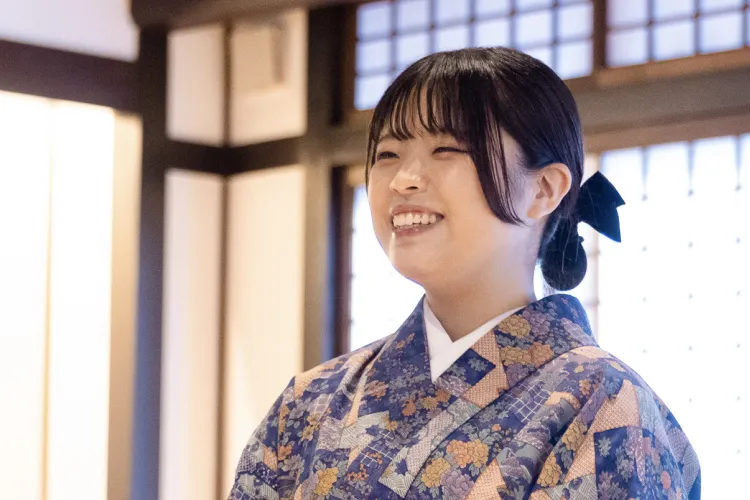私が司に興味を持ったきっかけは、美味しいものが好きで、着物が着れるようになりたかったからという、単純なものでした。飲食店でのアルバイトの経験もなく、はじめは不安でしたが、入社後の研修がしっかりとしていて、着物の着付けはもちろん、接客する上で美しく見える所作をしっかりと教えてもらい、自信を持って接客が出来るようになりました。今では接客主任として、多くの後輩に教えていけるようになりました。